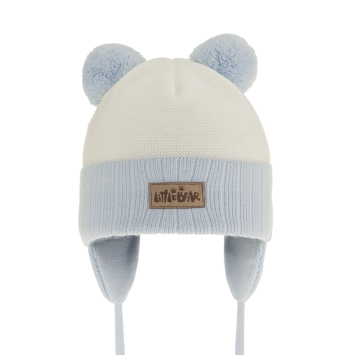 Berretto autunno/primavera bambino, azzurro, con due pon pon, con lacci, Gigant