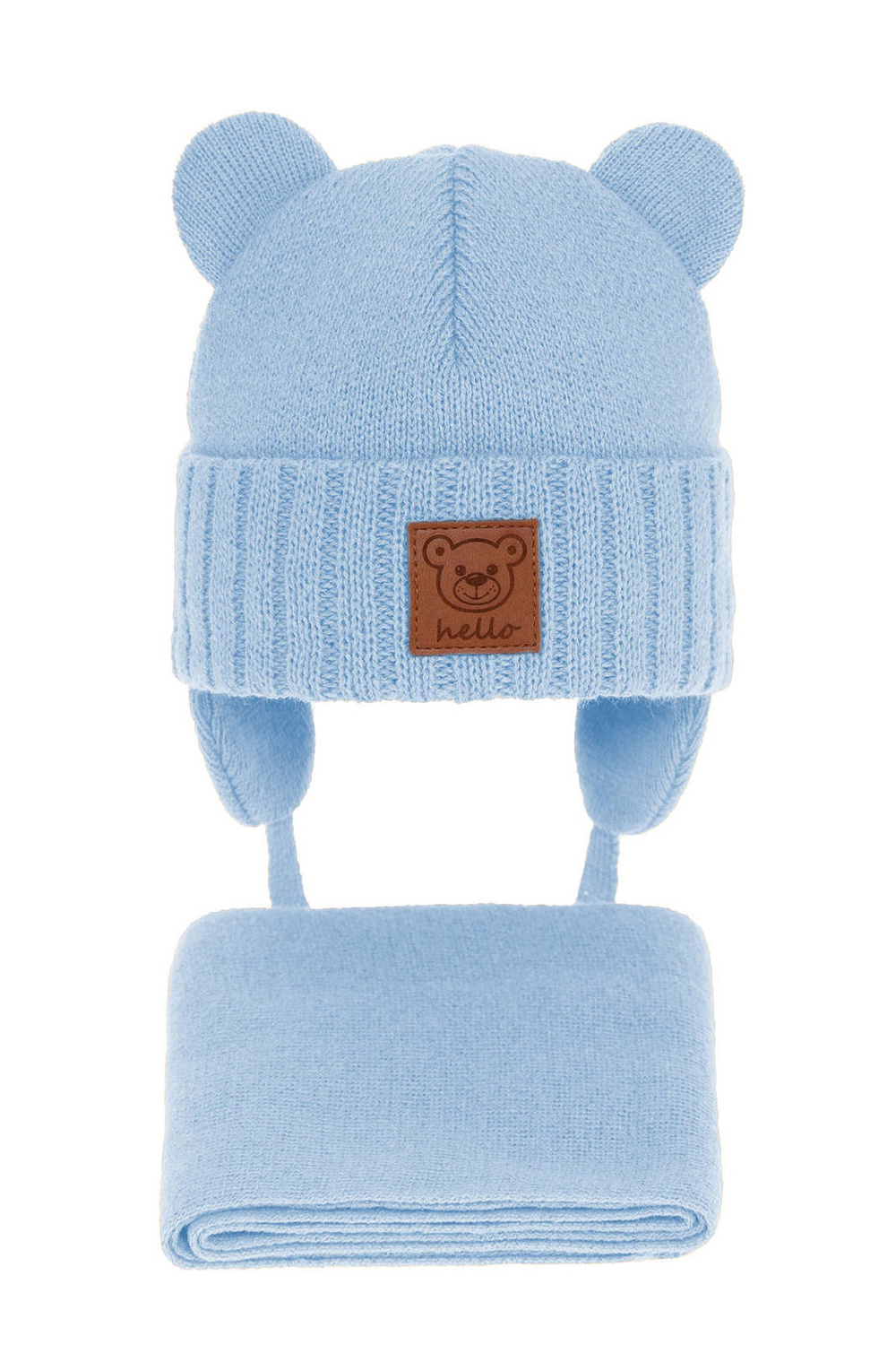 Set invernale bambino: berretto e sciarpa, azzurro, con lacci, Petit
